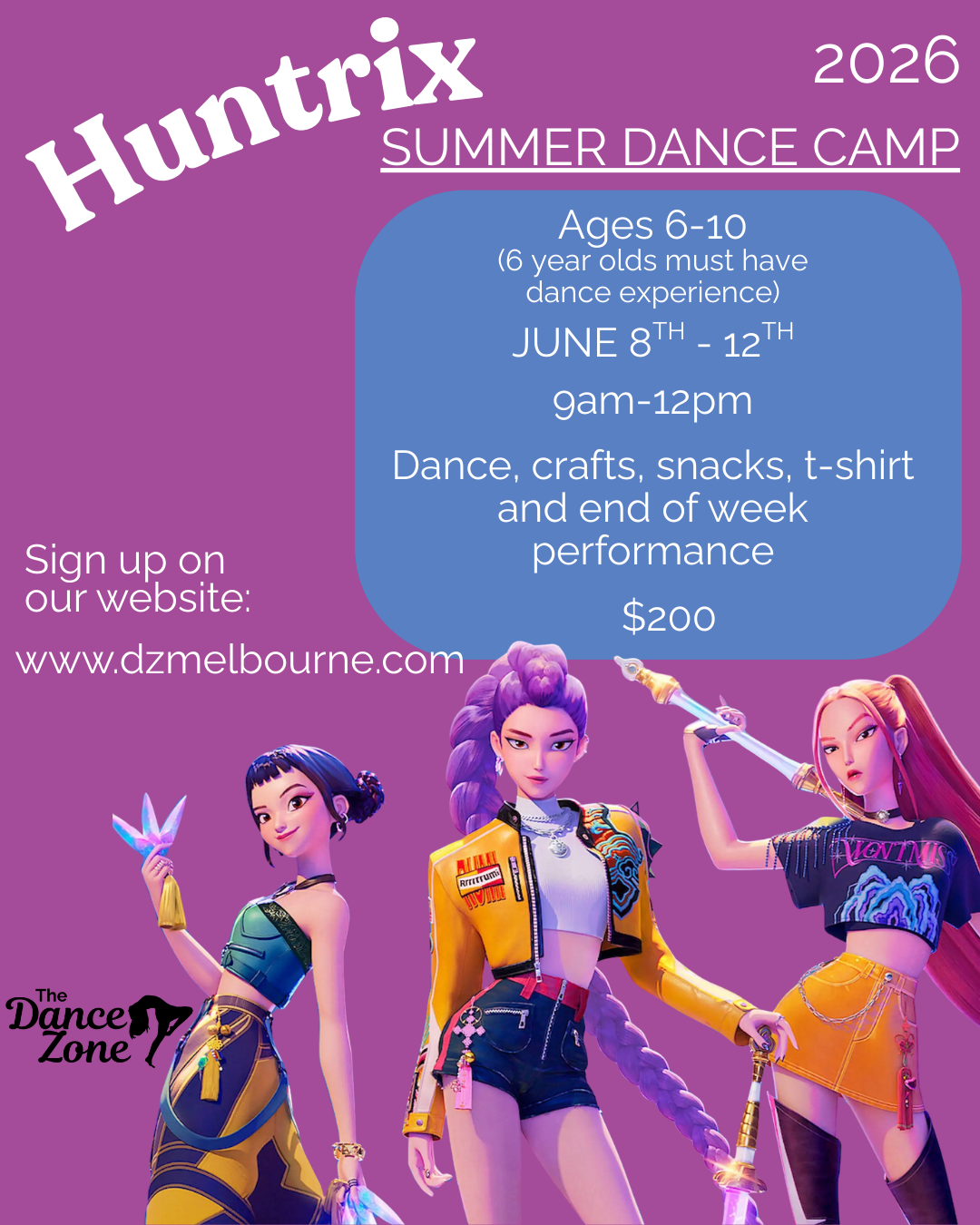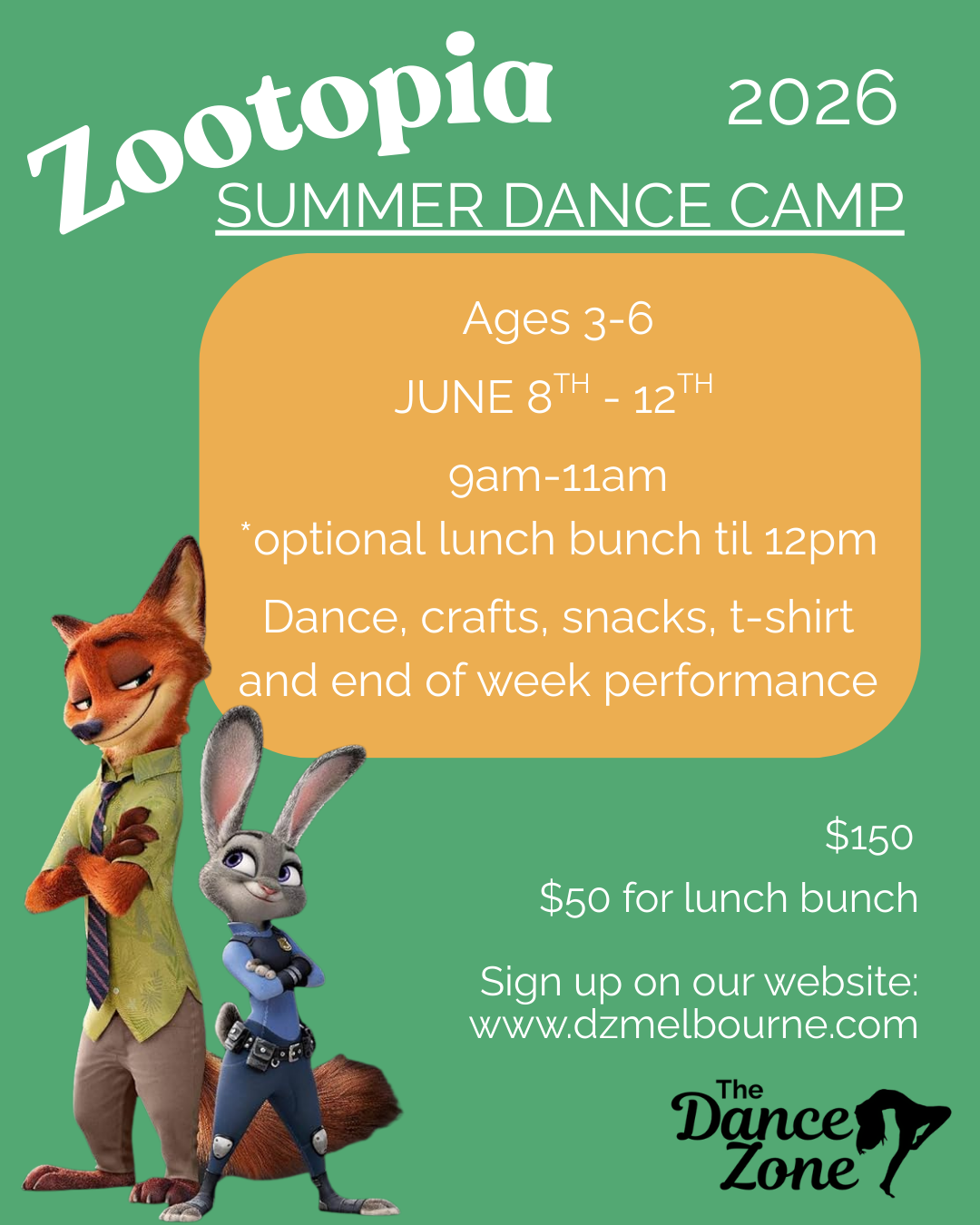2026 Summer Camps Week 1: June 8th - 12th “Zootopia” Summer Dance Camp Zootopia Sign Up Here “Huntrix” Summer Camp Dance Huntrix Sign Up Here Week 2: July 6th - 10th “Bluey” Summer Dance Camp Bluey Sign Up Here “For Good” Summer Dance Camp For Good Sign Up Here Week 3: July 27th - 31st “Lego” Summer Dance Camp Lego Sign Up Here “Hogwarts” Summer Dance Camp Hogwarts Sign Up Here